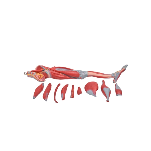 Modelo anatômico de perna musculada com músculos destacáveis, confeccionado em PVC especial, totalmente pintado a mão;
