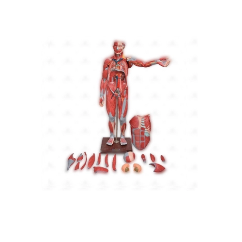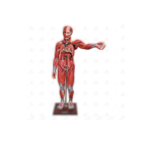 Com o modelo anatômico de figura muscular de 1,70 SD-5026/B, é possível estudar de forma detalha a musculatura superficial, a musculatura profunda, vasos e nervos; esta figura muscular possui 198 pontos identificados, que facilitam a identificação de cada estrutura, e podemos visualizar dentre outras: