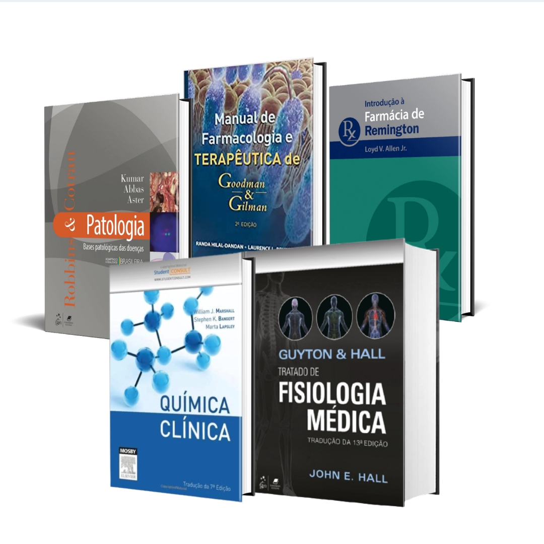 Este kit é composto pelos seguintes produtos: Fisiologia do Guyton ,Manual de Farmacologia Terapêutica de Goodman&Gilman Introdução á Farmácia de Remington Química Clínica, Formas de Pagamento: => Boleto em 10x sem juros, com a Primeira parcela para 60 dias => Cartão: Pacelado em 10x sem juros.=> A vista - 10% de Desconto - Prazo de Entrega: 15 Dias Úteis Importante: Após finalizar a compra você será direcionado para nosso whatsapp onde será realizado um atendimento personalizado para então finalizarmos a venda!