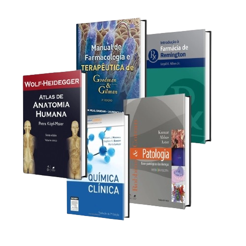 Este kit é composto pelos seguintes produtos: Introdução á Farmácia de Remington; Manual de Farmacologia Terapêutica de Goodman&Gilman; Anatomia Humana; Química Clínica; Robins&Cotran – Patologia: Bases Patológicas das Doenças; Formas de Pagamento: => Boleto em 10x sem juros, com a Primeira parcela para 60 dias => Cartão: Pacelado em 10x sem juros ou a Avista - 10% de Desconto - Prazo de Entrega: 15 Dias Úteis Importante: Após finalizar a compra você será direcionado para nosso whatsapp onde será realizado um atendimento personalizado para então finalizarmos a venda!