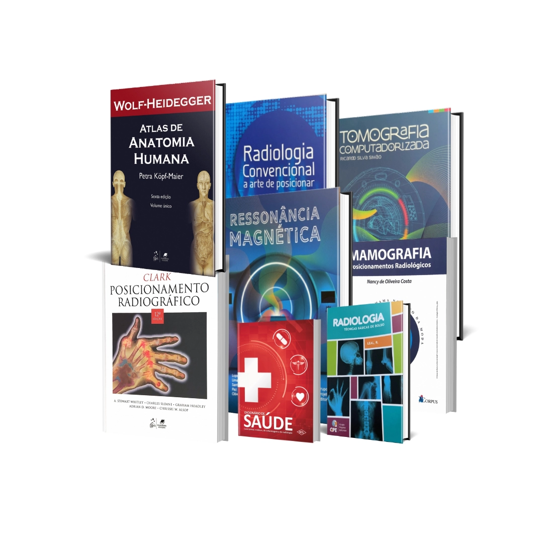 ste Kit é composto pelos seguintes produtos: Radiologia – Técnicas Básicas de Bolso; Tomografia Computadorizada; Ressonância Magnética – Princípio Físico e Aplicação; Radiologia Convencional – A Arte de Posicionar; Mamografia – Posicionamento Radiológicos; Clark – Posicionamento Radiográfico, Atlas de Anatomia Humana. Formas de Pagamento: => Boleto em 10x sem juros, com a Primeira parcela para 60 dias => Cartão: Pacelado em 10x sem juros => Avista - 10% de Desconto - Prazo de Entrega: 15 Dias Úteis Importante: Após finalizar a compra você será direcionado para nosso whatsapp onde será realizado um atendimento personalizado para então finalizarmos a venda!