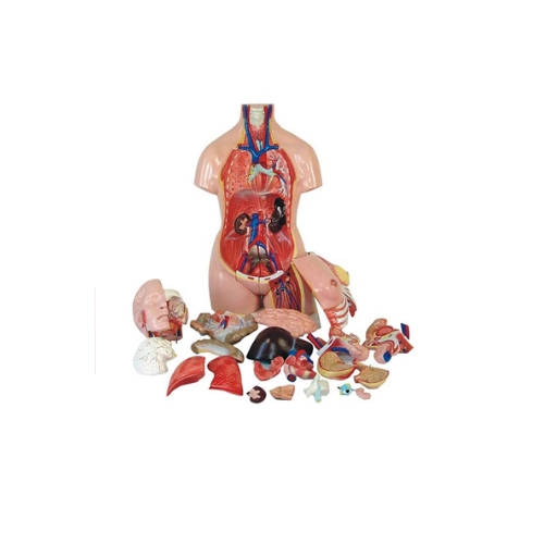 Modelo anatômico de Torso bissexual dividido em 24 Partes de 85 cm de altura, confeccionado em PVC e resina plástica emborrachada, é uma excelente ferramenta para entender o corpo humano de forma geral;