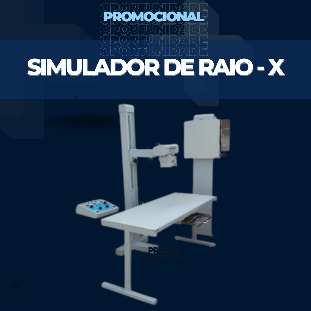 Aparelho simulador de raio-x, projetado especialmente para o treinamento de exames radiológicos com praticidade e segurança. Indicado para escolas técnicas, faculdades e cursos de radiologia.