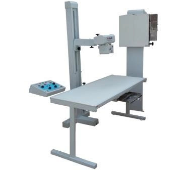 MESA BUCKY TAMPO FIXO: Mesa Bucky de Tampo Fixo, com deslocamento longitudinal do bucky de +/- 1,2 m para cada lado. Bucky com bandeja de aço inox especial com travas para todos os tipos de chassis radiográficos. Tampo em fórmica traçada para fácil localização do paciente. Dimensões da mesa 1,8 m de comprimento, 65 cm de largura e 70 cm de altura. Pintura eletrostática.